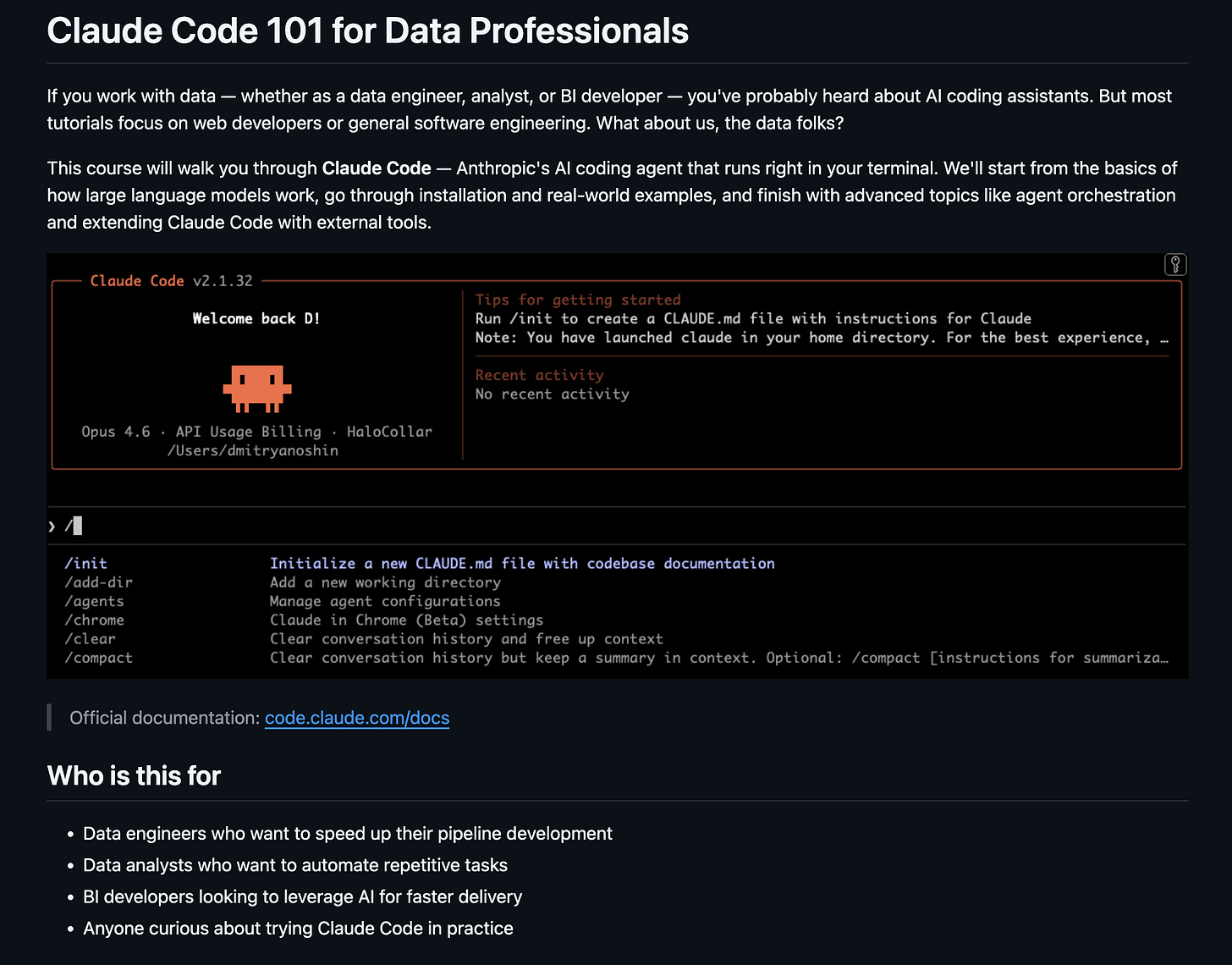 Free course - Claude Code 101 for Data Professionals