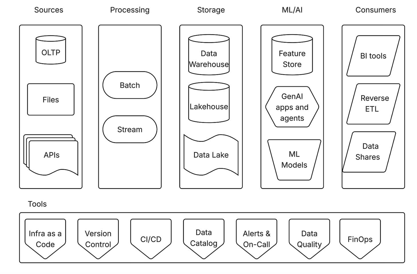 Before we dive into the details, hereâs the high-level view of what weâre building. A solid data engineering system has six essential layers: