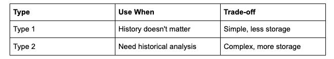 Know your SCDs. Type 1 vs Type 2 is an interview favourite.