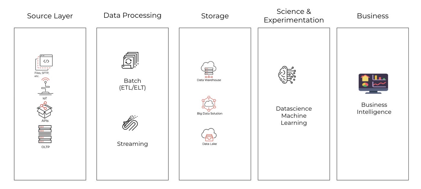 This is how modern data teams work. Source data flows through ingestion, lands in storage, gets transformed, and powers dashboards. The same pattern. Every time.