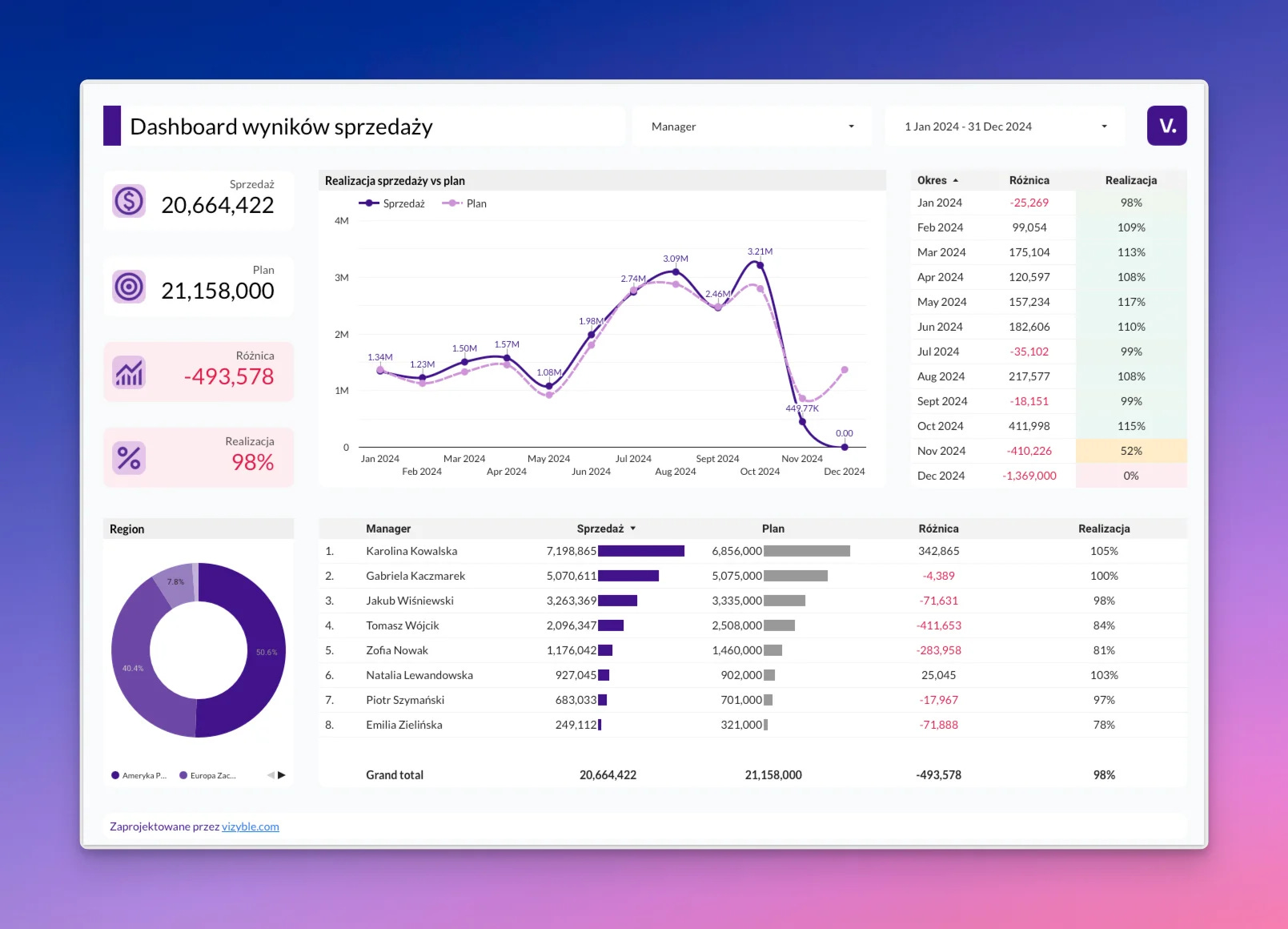 A BI dashboard showing insights